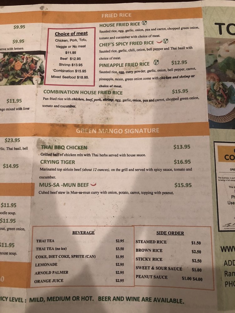 The curry selections are where Green Mango shines, with offerings like the fragrant green curry and rich Panang curry, each meticulously crafted with fresh ingredients. Vegetarian and vegan options abound, ensuring inclusivity for all diners. The casual atmosphere, coupled with attentive service, creates a welcoming space for families and groups. A visit here is not just about savoring meals; it’s about experiencing the heart of Thai culture through every dish. Don't miss their happy hour specials for added delight!