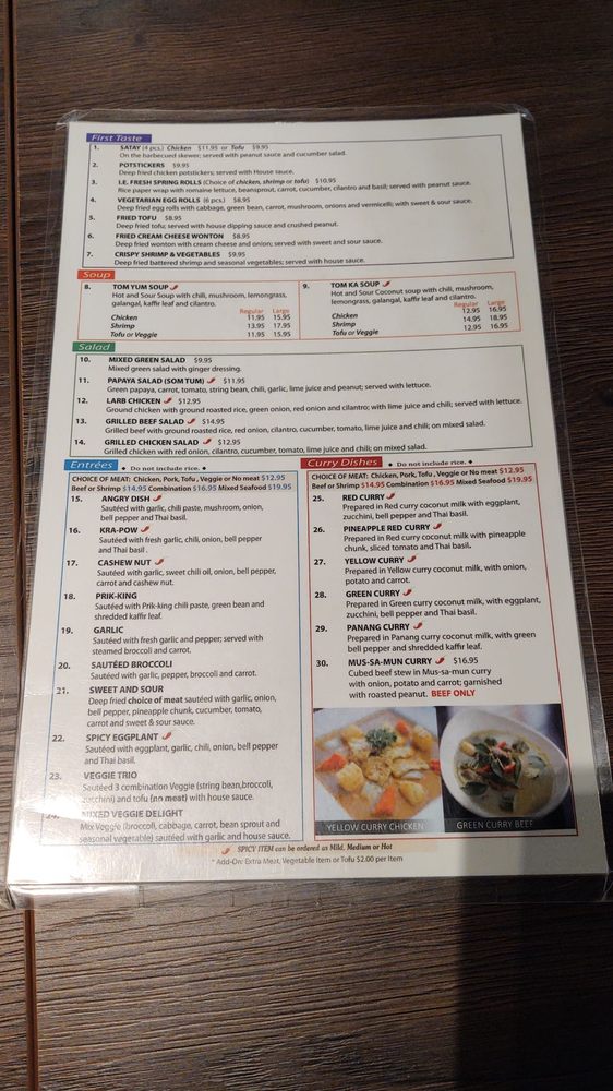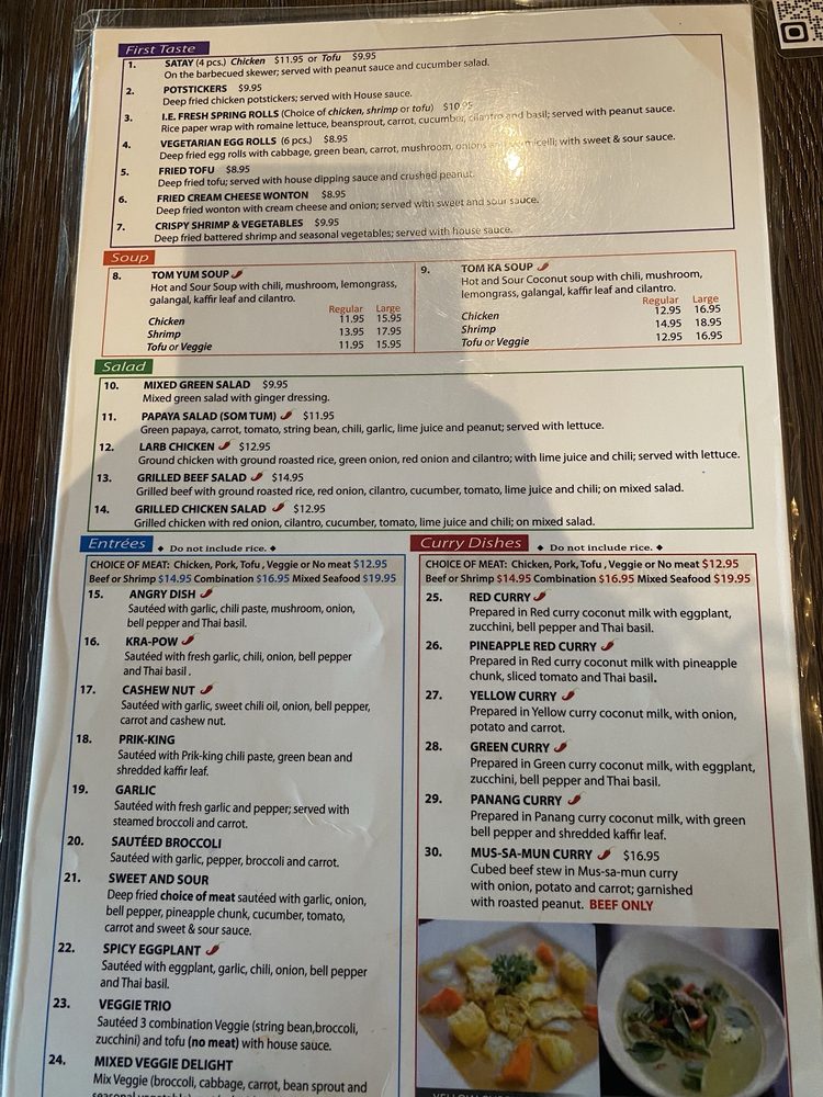 Located in the heart of Rancho Cucamonga, Green Mango Thai stands out as a premier destination for seafood enthusiasts and Thai cuisine lovers alike. The menu is a delightful voyage through traditional Thai flavors, featuring a range of appetizers like the "Bangkok Wrap" and crispy fried options that promise a comforting start to your meal. For those craving something fresh, the salads, such as the "Classic Salad" and "Papaya Pok Pok," are vibrant and full of zest.
